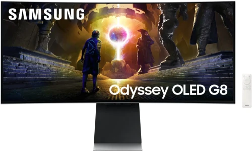 Immerse yourself in ultrawide QHD gaming with the 34" Samsung Odyssey OLED G8, featuring 175 Hz, 0.03 ms ...